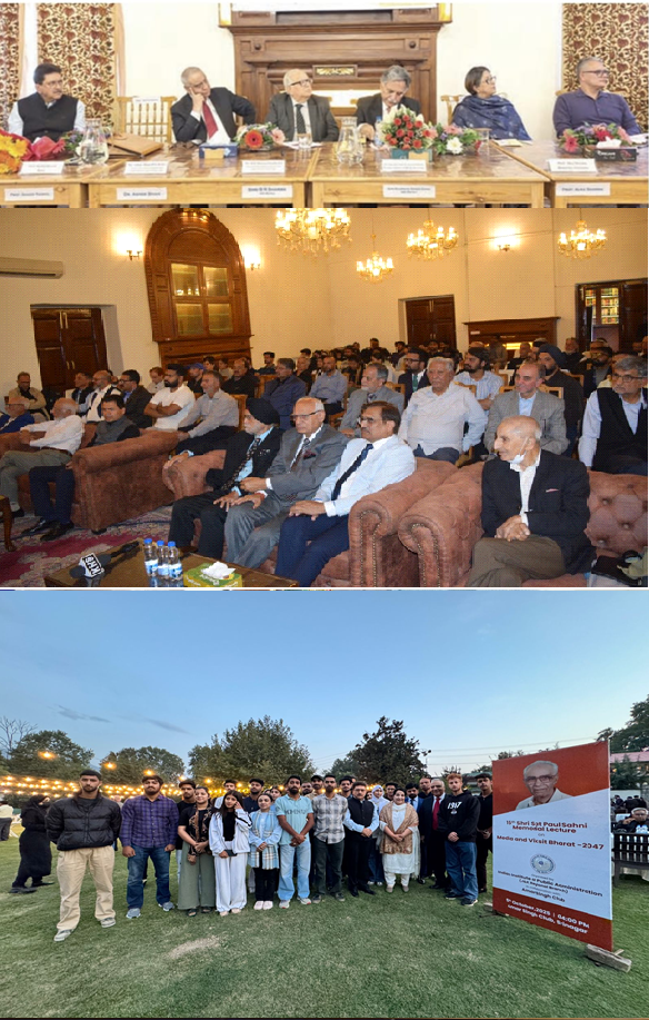 The Indian Institute of Public Administration (IIPA), Jammu & Kashmir Regional Branch, in collaboration with the Amar Singh Club, Srinagar, organised the 15th S. P. Sahni Memorial Lecture on October 5, 2025, at the Amar Singh Club, Srinagar. The memorial lecture was delivered by Prof. Shahid Rasool, Dean Academic Affairs and Dean, School of Media Studies, Central University of Kashmir, who emphasised the critical role of developmental journalism in achieving the vision of “Viksit Bharat @2047”. He highlighted concerns over the commercialisation of mainstream media were highlighted with a need to empower citizens through digital access, and the responsibility of media to Page 2 of 2 strengthen democracy, promote scientific temper, and focus on inclusive and positive narratives. Shri Khurshid Ganai, former Advisor to the Governor, delivered the Chief Guest address, highlighting key challenges facing the country despite economic progress. In his presidential address, Shri B. R. Sharma, Chairman, IIPA J&K Regional Branch and former Chief Secretary, J&K, paid rich tributes to Late S. P. Sahni, recalling his legacy as a committed journalist and a bridge between societies during challenging times. The lecture was attended by eminent intellectuals, academicians, media professionals, civil society members, and family members of Late S. P. Sahni